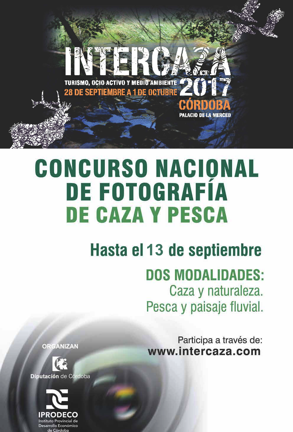 Un año más la Feria del Turismo, Ocio Activo y Medio Ambiente, Intercaza, pone en marcha su Concurso de Fotografía de Caza y Pesca, con el objetivo de impulsar los valores artísticos relacionados con el sector cinegético, plasmando, a través de la fotografía, la visión del sector de la caza y la pesca de la provincia de Córdoba. Las bases del mismo pueden consultarse en este enlace